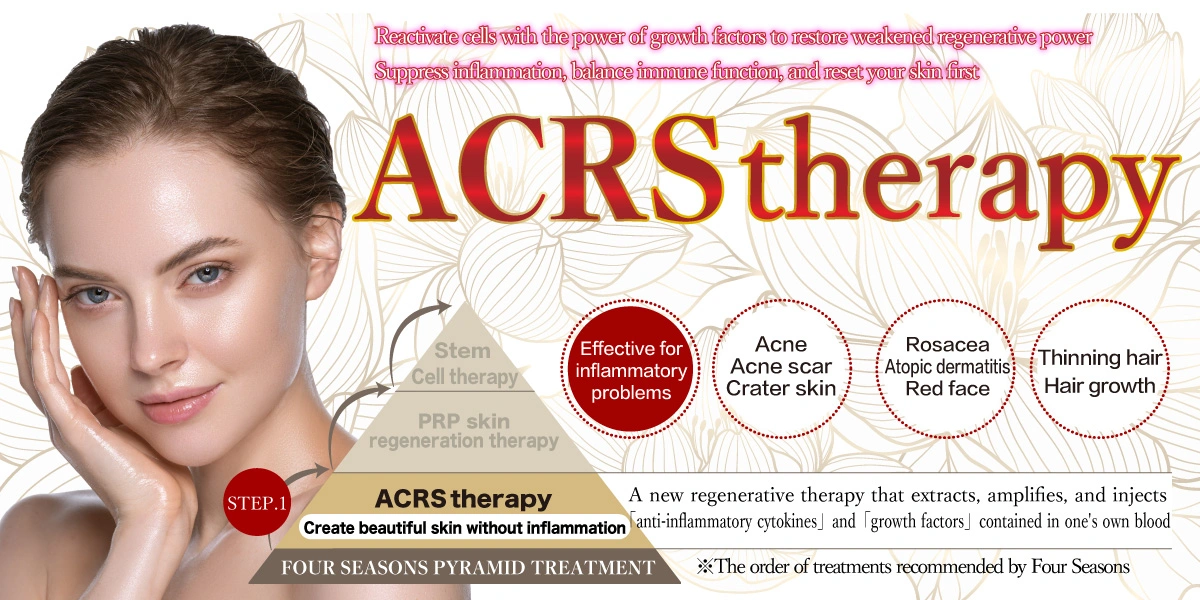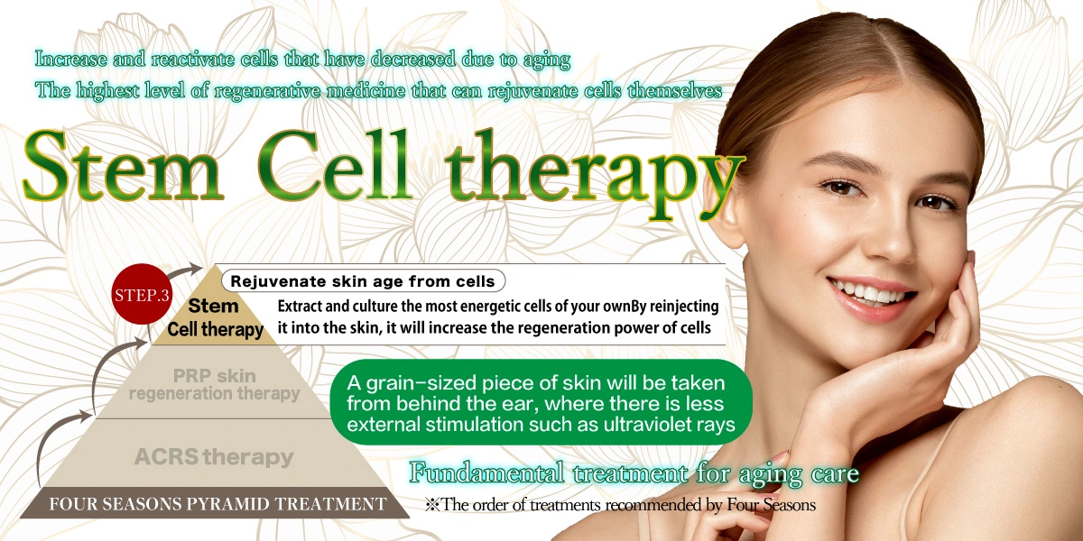 Four Seasons Cosmetic Dermatology is a beauty clinic near Ginza in Tokyo | We specialize in skin regeneration medicine and provide various skin regeneration treatments such as Stem cell therapy (fibroblast transplantation), PRP skin regeneration therapy, ACRS therapy, and Exosome therapy.