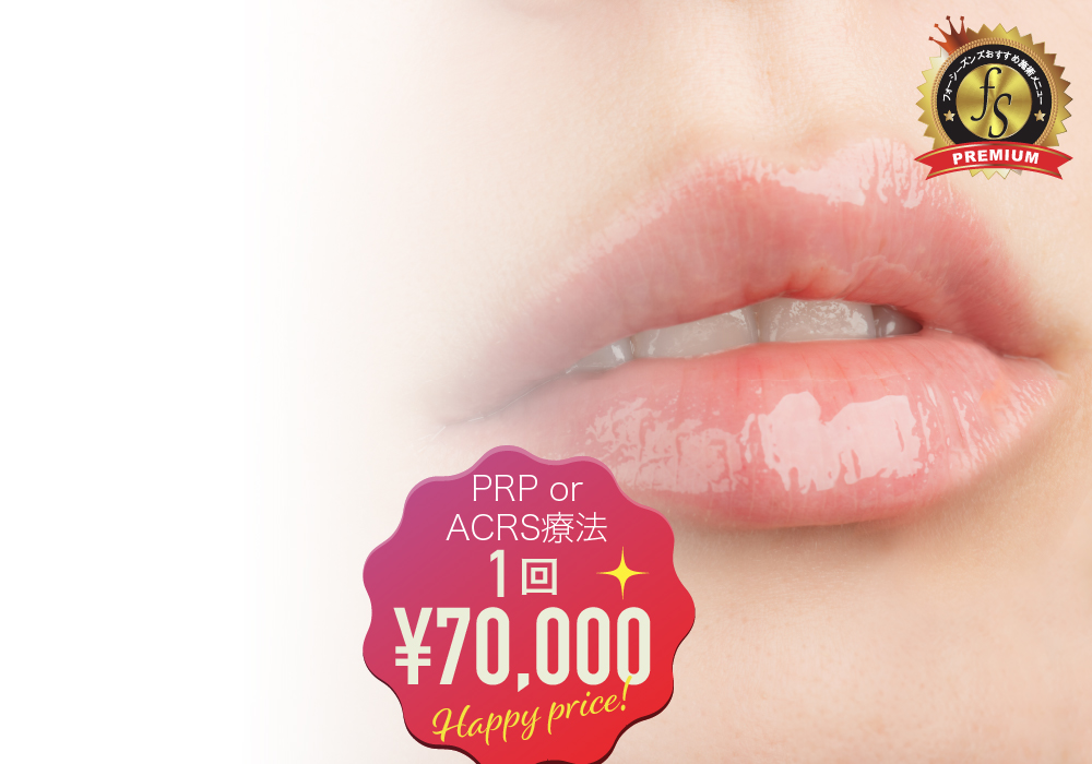 ご自身の血液成分を使用する副作用の心配がない、PRP療法・ACRS療法で荒れている唇を改善します。免疫力が向上した唇は血流が良くなり、コラーゲン、ヒアルロン酸の生産量もupします。根本治療で負担をかけずにもっちりぷるぷる、自然な理想の口元をつくりませんか?