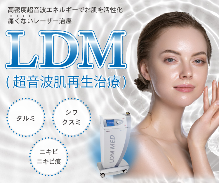 様々な悩みを改善出来る、「高密度超音波の振動エネルギーで様々な周波を放出し改善出来る治療用機器」LDM-MEDを導入しております!一般的に「水玉リフティング」として知られています。